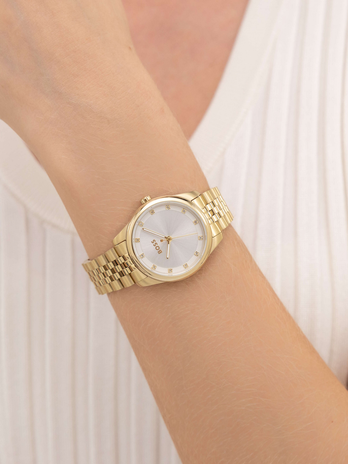 Корпус и браслет часов из нержавеющей стали с PVD покрытием. Циферблат с минеральным стеклом устойчивым к появлению царапин.