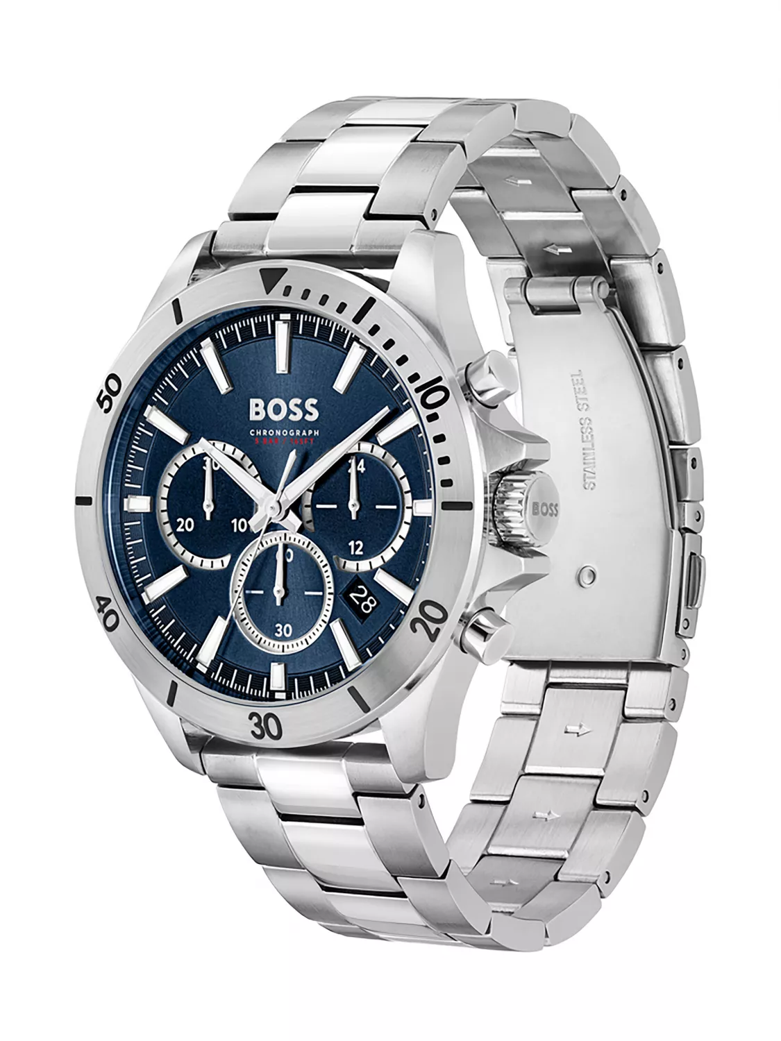 Мужские кварцевые часы BOSS 1514069, коллекция TROPER. Корпус часов и браслет выполнены из нержавеющей стали. Фукции: хронограф, дата. Диаметр:45 мм. Водозащита: 5 bar.