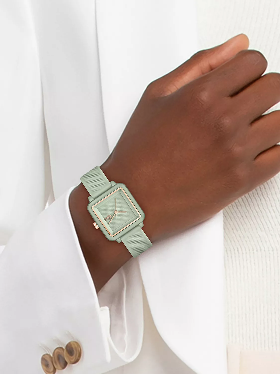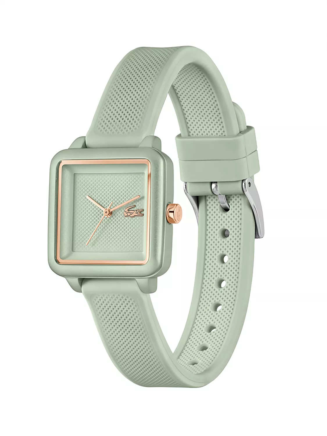 Изящный минималистичный дизайн квадратного циферблата с едва заметным рисунком Хлóпка Пикé – ДНК Lacoste.12.12 Flow. Женские элегантные кварцевые часы,выполненые в нежном зеленом тоне.Минеральное стекло. Ремешок выполнен из гипоаллергенного и термостойкого силикона. Водостойкость 3 АТМ.