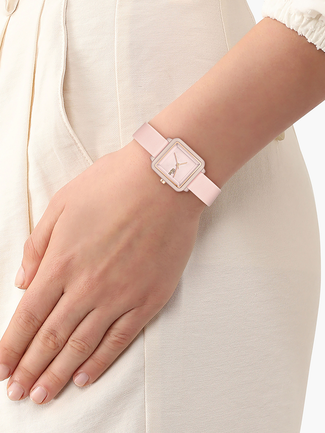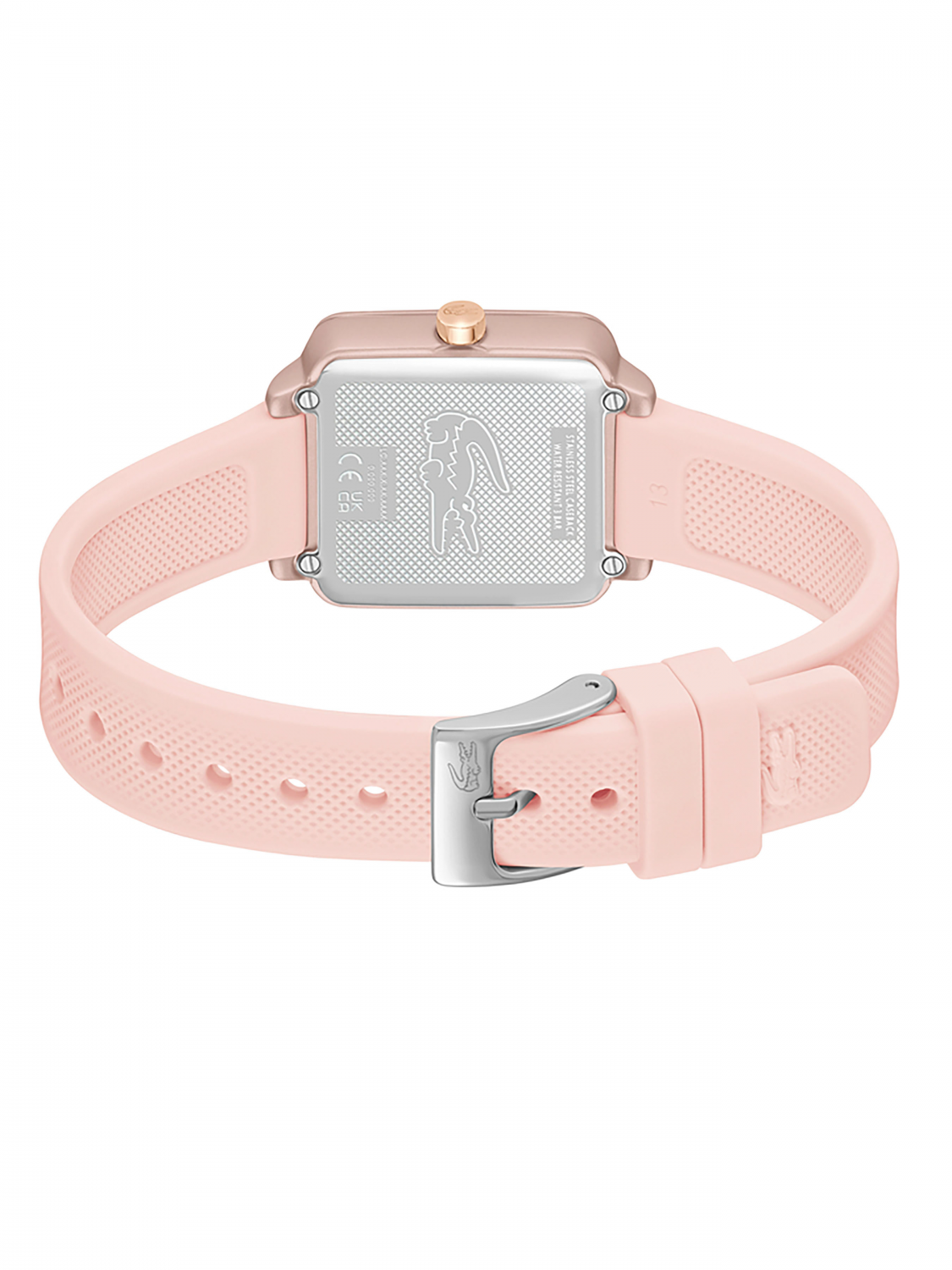 Изящный минималистичный дизайн квадратного циферблата с едва заметным рисунком Хлóпка Пикé – ДНК Lacoste.12.12 Flow. Женские элегантные кварцевые часы,выполненые в нежном розовом тоне.Минеральное стекло. Ремешок выполнен из гипоаллергенного и термостойкого силикона. Водостойкость 3 АТМ.