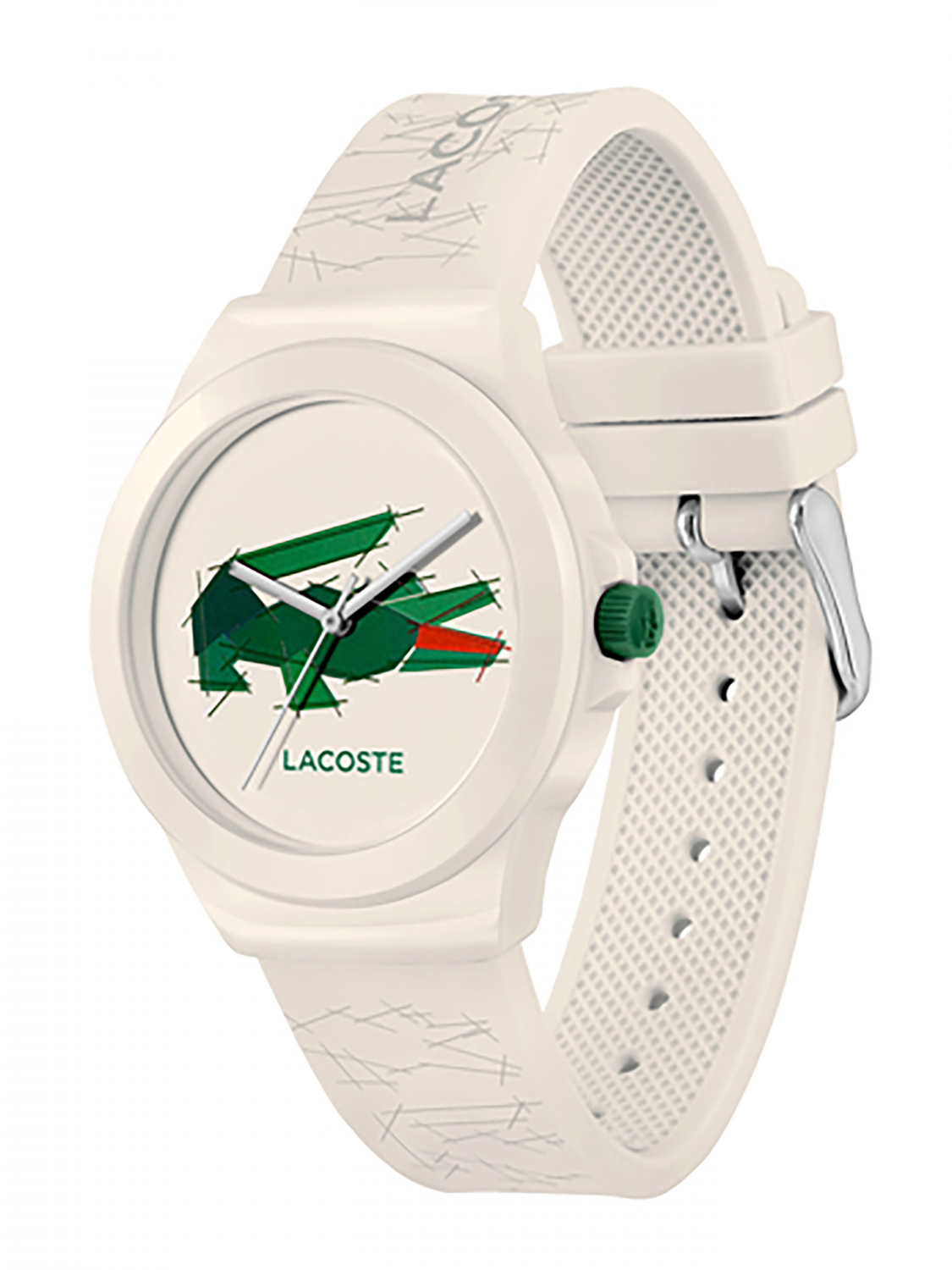 Женские кварцевые часы Lacoste. Коллекция NEOCROC. Круглый пластиковый корпус в центре которого фирменный и яркий логотип Lacoste. Минеральное стекло. Ремешок выполнен из силикона на традиционной застежке. Водозащита 5 АТМ/bar.