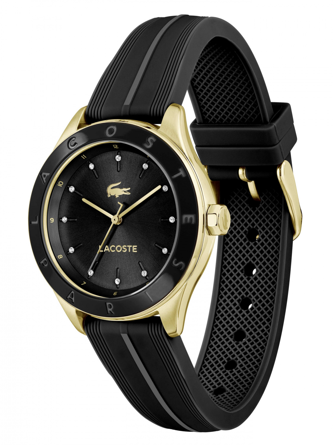 Lacoste 2001461 — это женские наручные часы из коллекции Billie, выполненные в элегантном черно-золотом стиле. Модель сочетает в себе спортивный минимализм и классическую роскошь, что делает её подходящей как для повседневного ношения, так и для особых случаев.