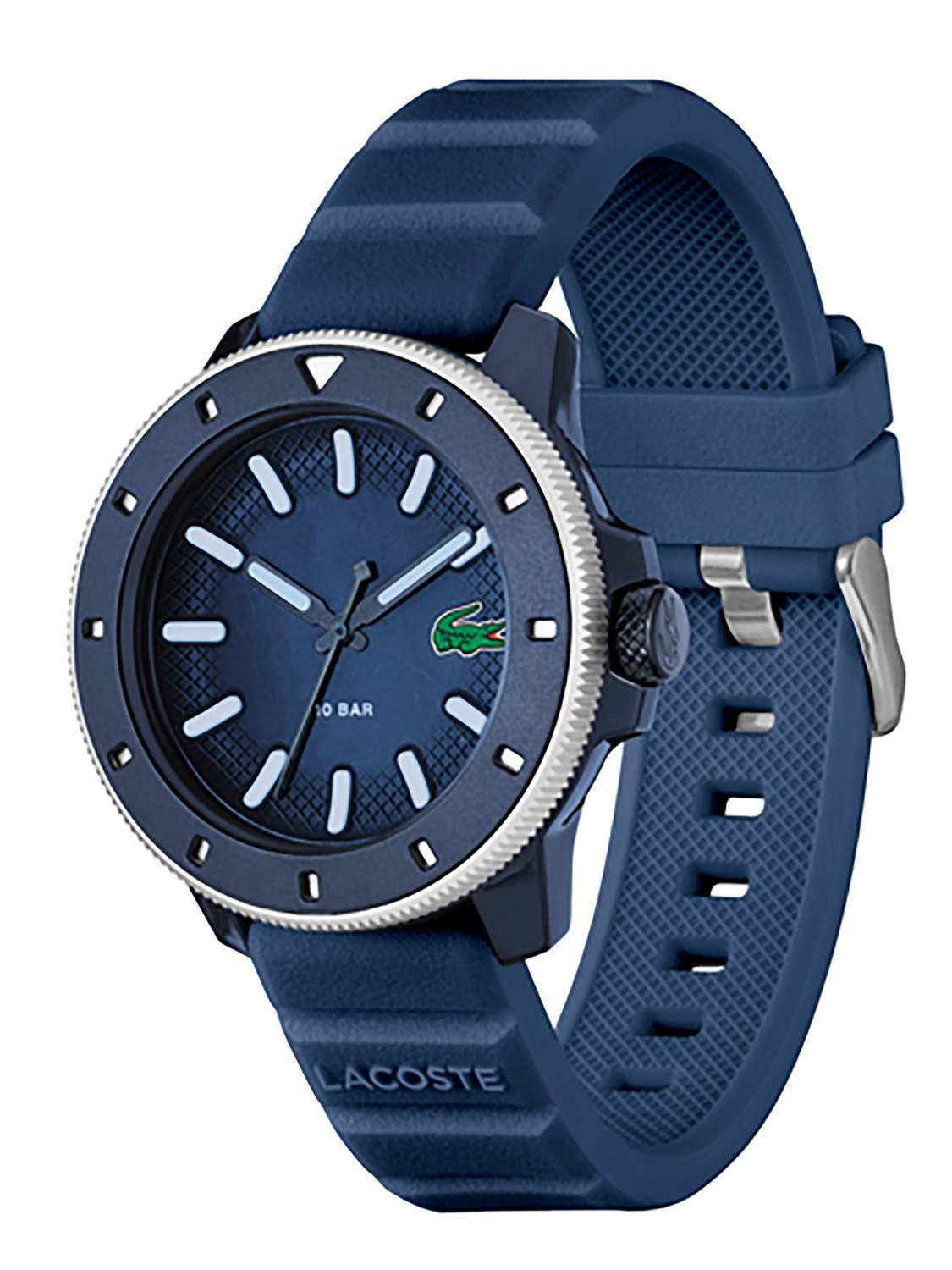 Мужские кварцевые часы LACOSTE.12.12 SCUBA. Пластиковый круглый корпус. Минеральное стекло. Силиконовый ремешок на традиционной застежке. Водонепроницаемость 10 АТМ/bar.