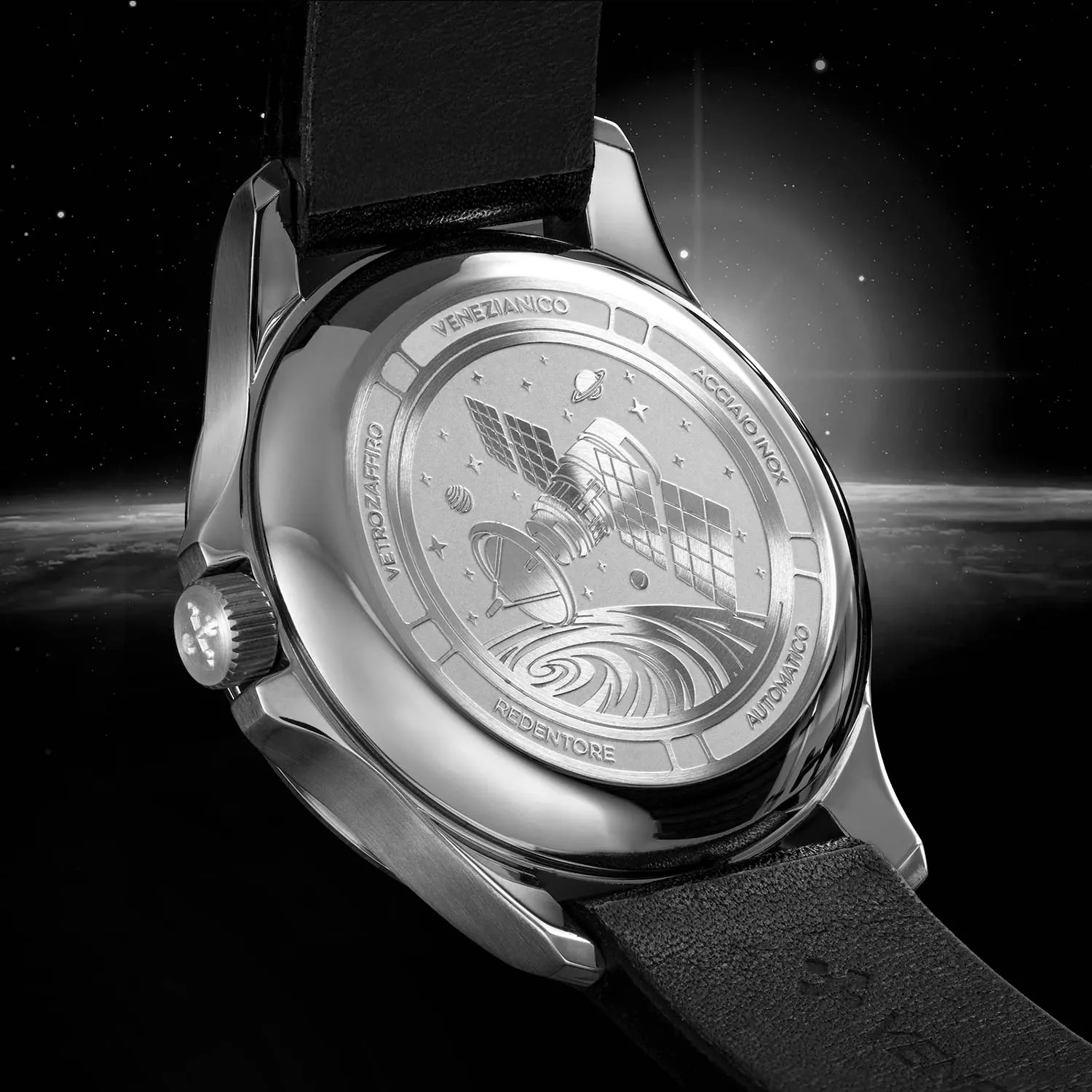 Эти часы сочетают в себе минимализм и элегантность с вневременным дизайном и идеально подходят для любого случая. Женские механические часы с автоподзаводом Redentore Ultrablack 36. Круглый стальной корпус из нержавеющей стали 316L. Абсолютно черный циферблат без меток с логотипом бренда является результатом использования эксклюзивной японской краски Musou Black™, которая способна поглощать 99,4% света, обеспечивая незабываемые визуальные впечатления. Циферблат защищает сапфировое стекло с антибликовым покрытием. Клиновидные стрелки в стиле Dauphine. Автоматический механизм с функцией взлома. В механизме 24 рубина, 21600 полуколебаний в час. Запас хода 41 час. Двунаправленный автоподзавод. Возможность ручного завода. Задняя крышка крепится на 6-ти винтах и украшена выгравированным изображением космического спутника и планет. Рифленая заводная головка с защитой. Ремешок из кожи Anilveau с классической застежкой. Есть мужская парная модель 1221510.